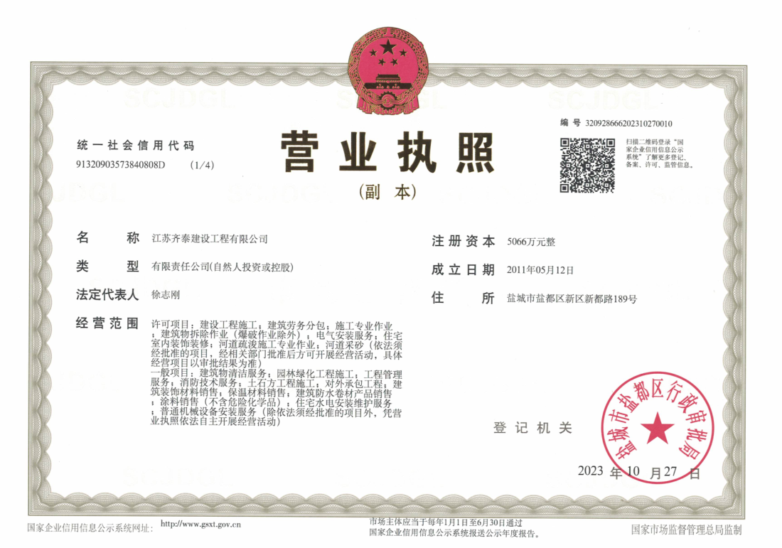 江苏齐泰防水堵漏工程有限公司 (隶属于齐泰建设) 地址:江苏盐城市盐都区新都路189号 |